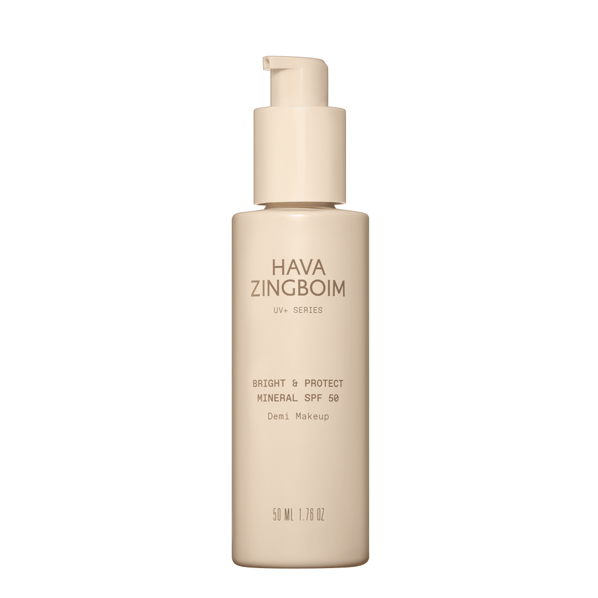 תכשיר הגנה מינרלי עם מקדם SPF 50 וכיסוי קל (Demi-Makeup), שפותח לעור רגיל עד יבש.